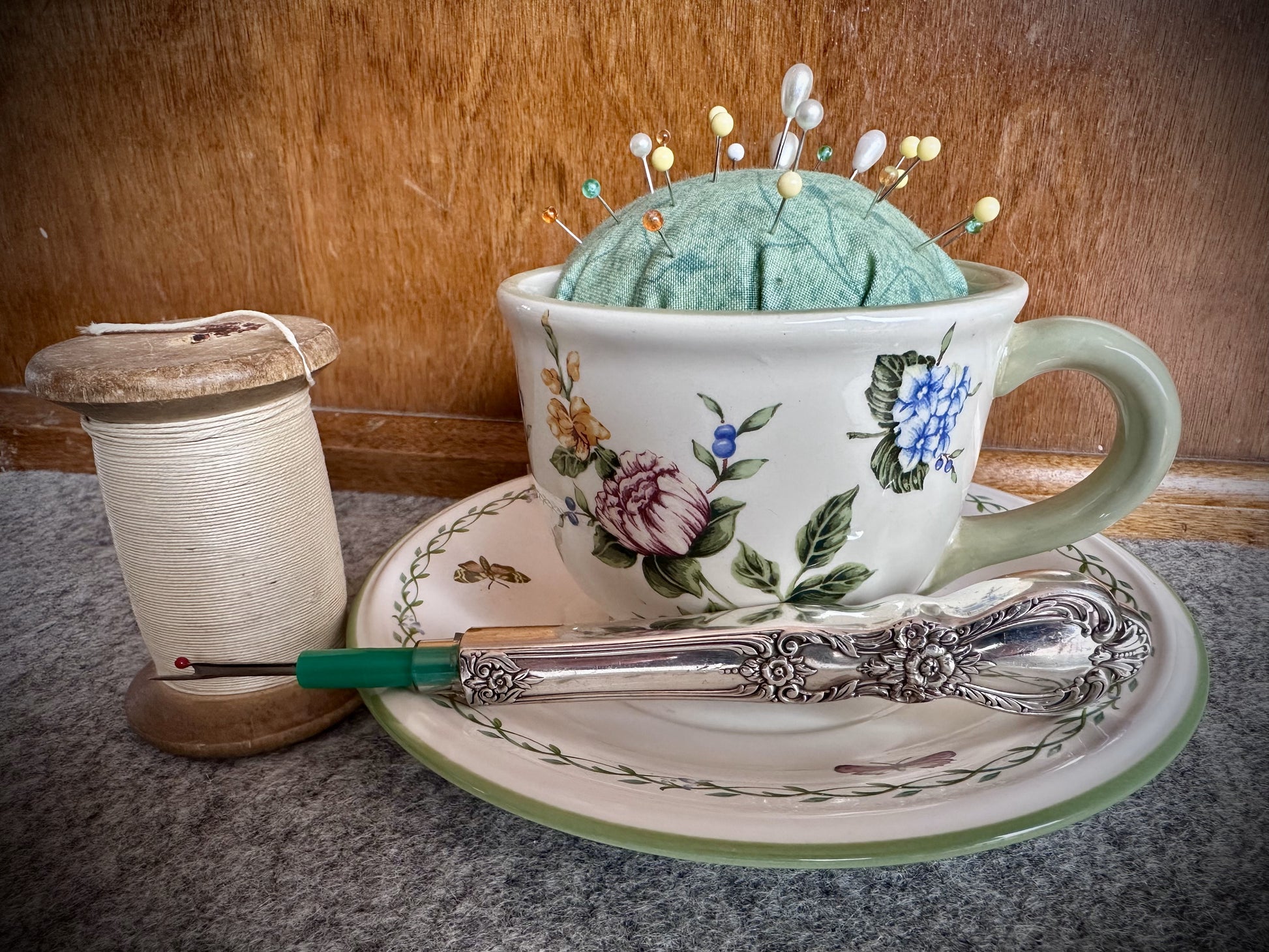 Expertly crafted from a vintage silver plated knife handle adorned with the iconic Heritage pattern from 1953, this seam ripper is not only a tool, but a piece of history. The replaceable seam ripper ensures longevity, while the upcycled design adds to its sustainability.
