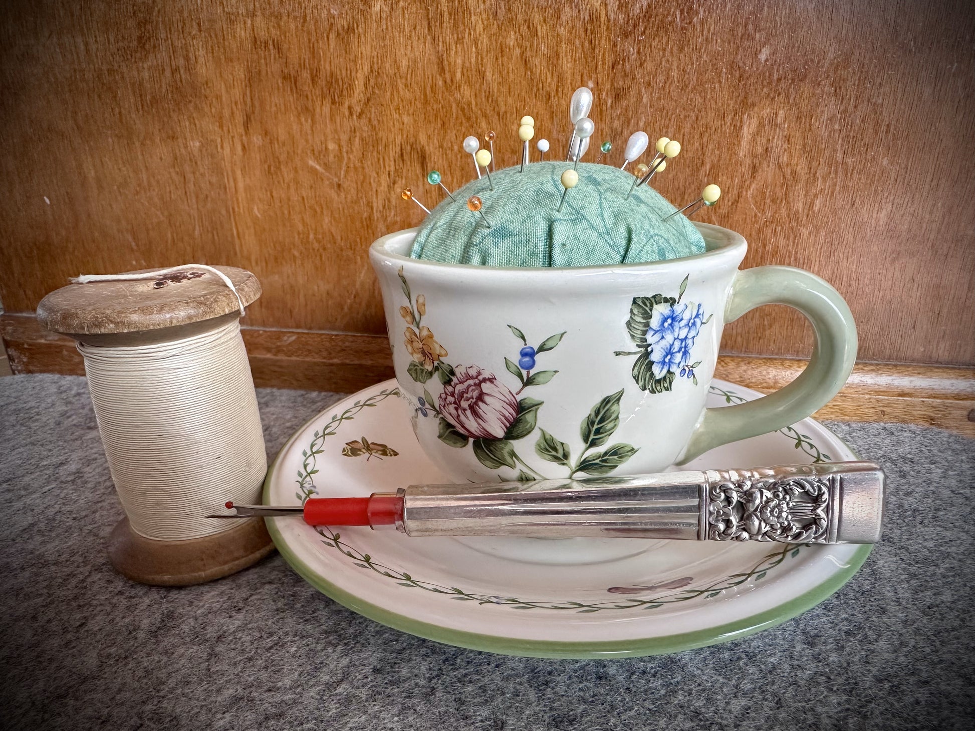 Expertly crafted from a vintage silver plated knife handle beautifully adorned with the Coronation design from 1936, this upcycled seam ripper offers both style and function. The replaceable blade makes it a long-lasting tool for all your sewing needs. Upgrade your sewing kit with this elegant and practical tool.