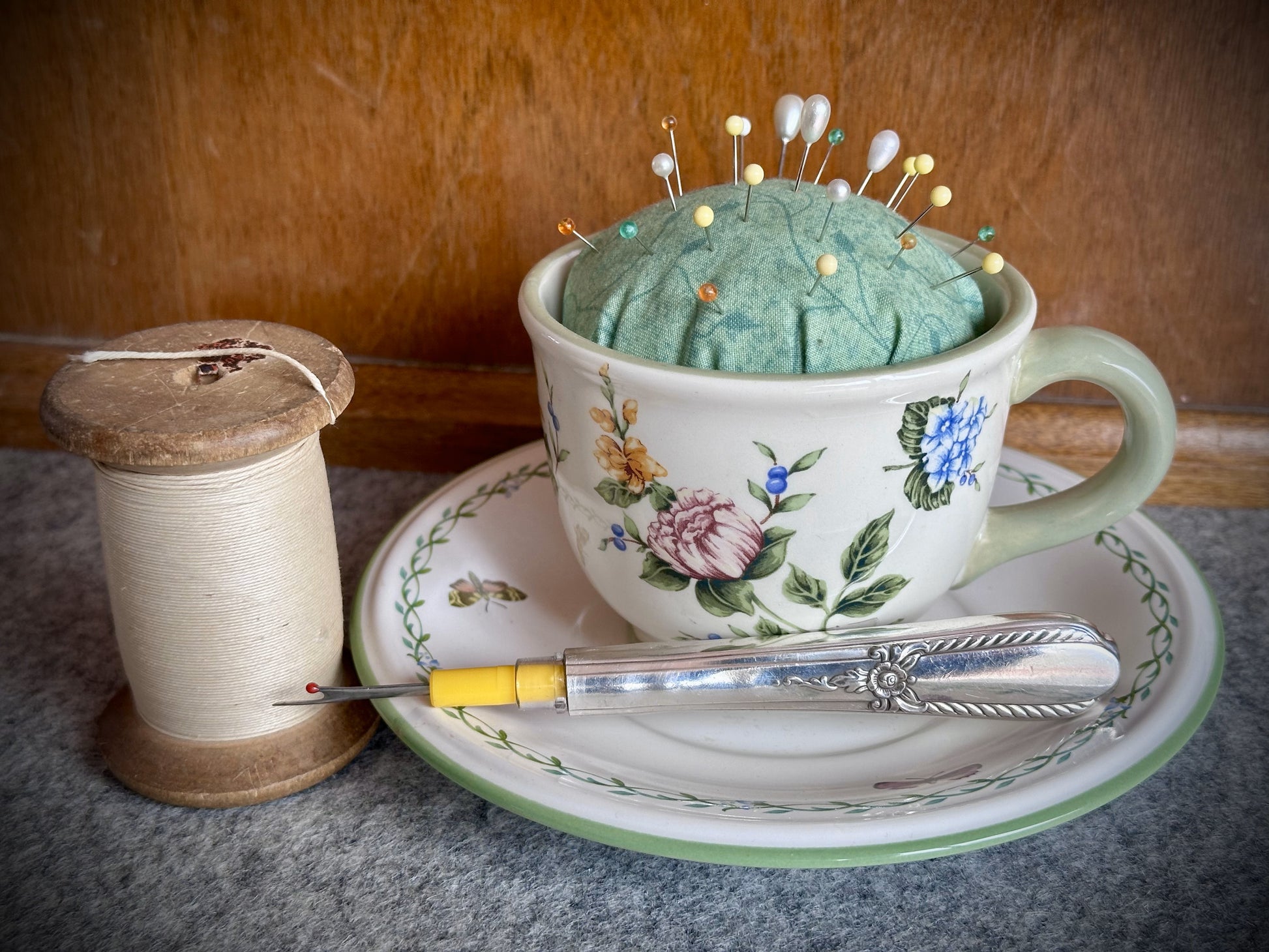 This vintage silver plated knife handle, featuring the Pendant design from 1941, has been expertly upcycled into a practical sewing tool. The replaceable seam ripper provides ease and efficiency for your quilting and sewing projects. Give your work a touch of history with this unique and functional piece.